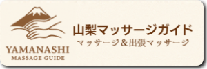 <p><a href="https://www.yamanashi.massage-guide.net/"><img src="https://www.yamanashi.massage-guide.net/images/img_bn_yamanashi_massageguide.png" target="_blank" alt="山梨マッサージガイド" /></a><br />山梨のマッサージ検索。指圧・整体・タイ古式・アロマオイルマッサージなどの店舗、出張マッサージ、エステ等の山梨検索サイト。セラピスト求人も掲載のサロン・出張マッサージのポータルサイト山梨。</p>
